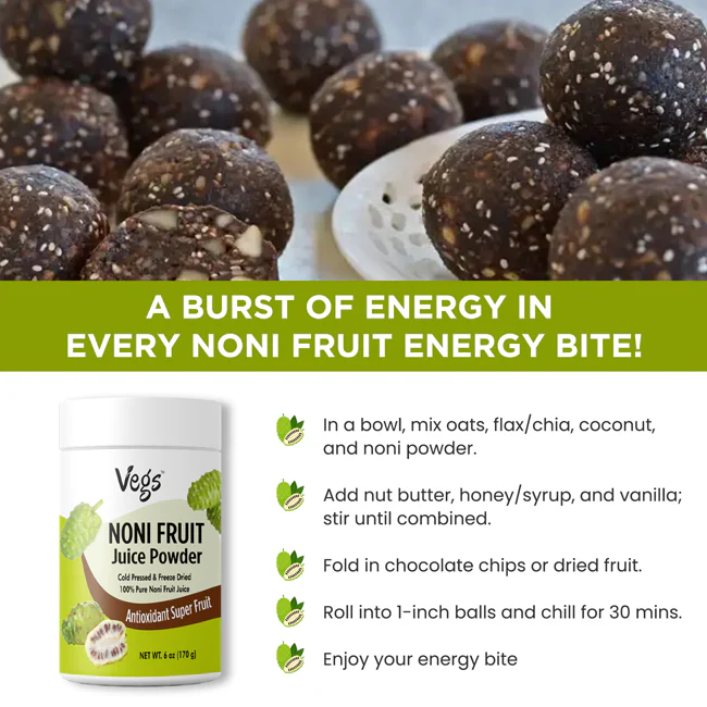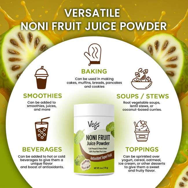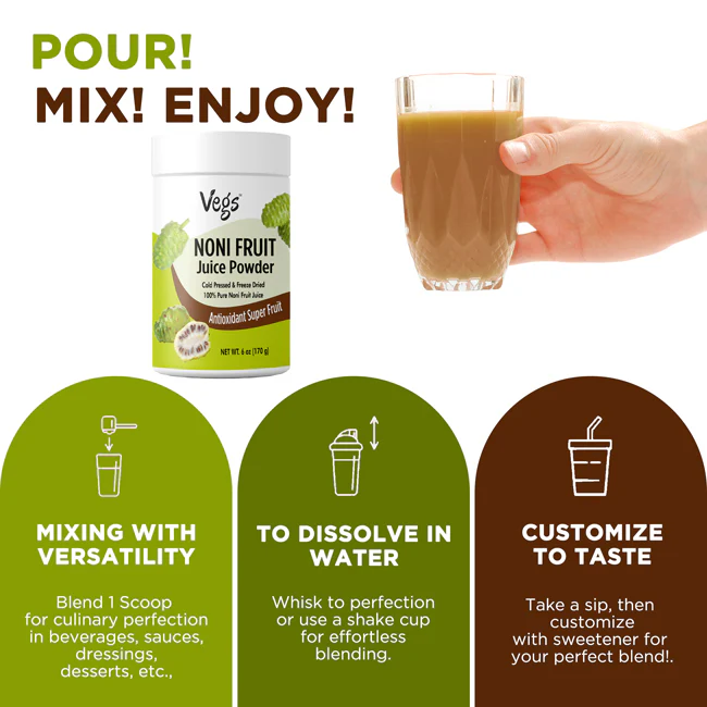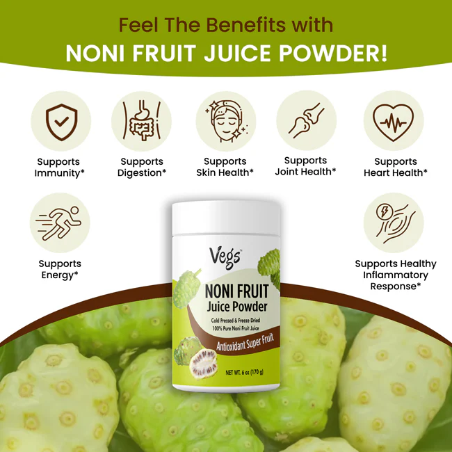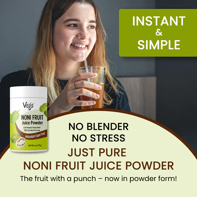 Enjoy a refreshing, vegan-friendly superfood drink anytime with Vegs Organic Noni Fruit Juice Powder — a simple way to add nourishing fruit goodness to your lifestyle.