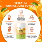 Enjoy the bright citrus burst of natural orange fruit powder in smoothies, juices, teas, baked goods, and recipes. Use it as a vegan orange drink mix or plant-based orange juice mix for a refreshing and healthy beverage.